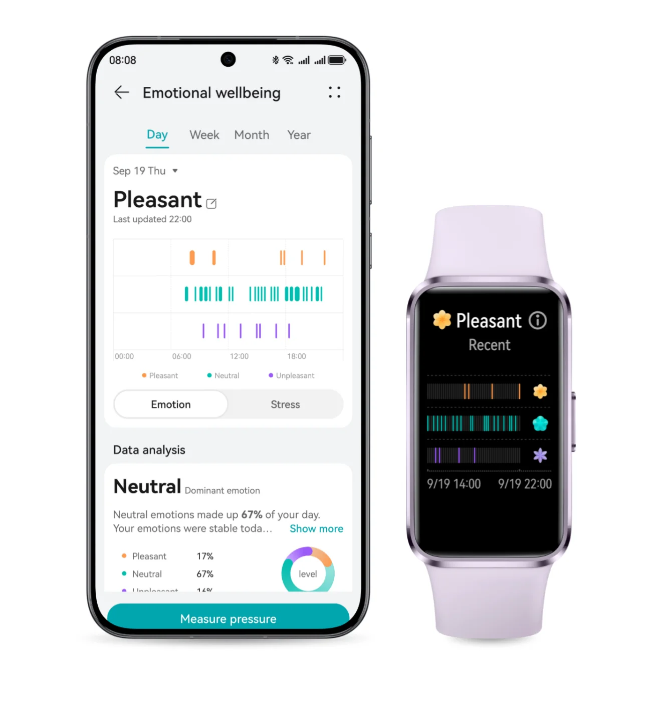 As tendências emocionais estão disponíveis apenas na versão mais recente do aplicativo Huawei Health, quando emparelhado com um telefone executando Android ou iOS de 64 bits.Este recurso não é compatível com Android de 32 bits.