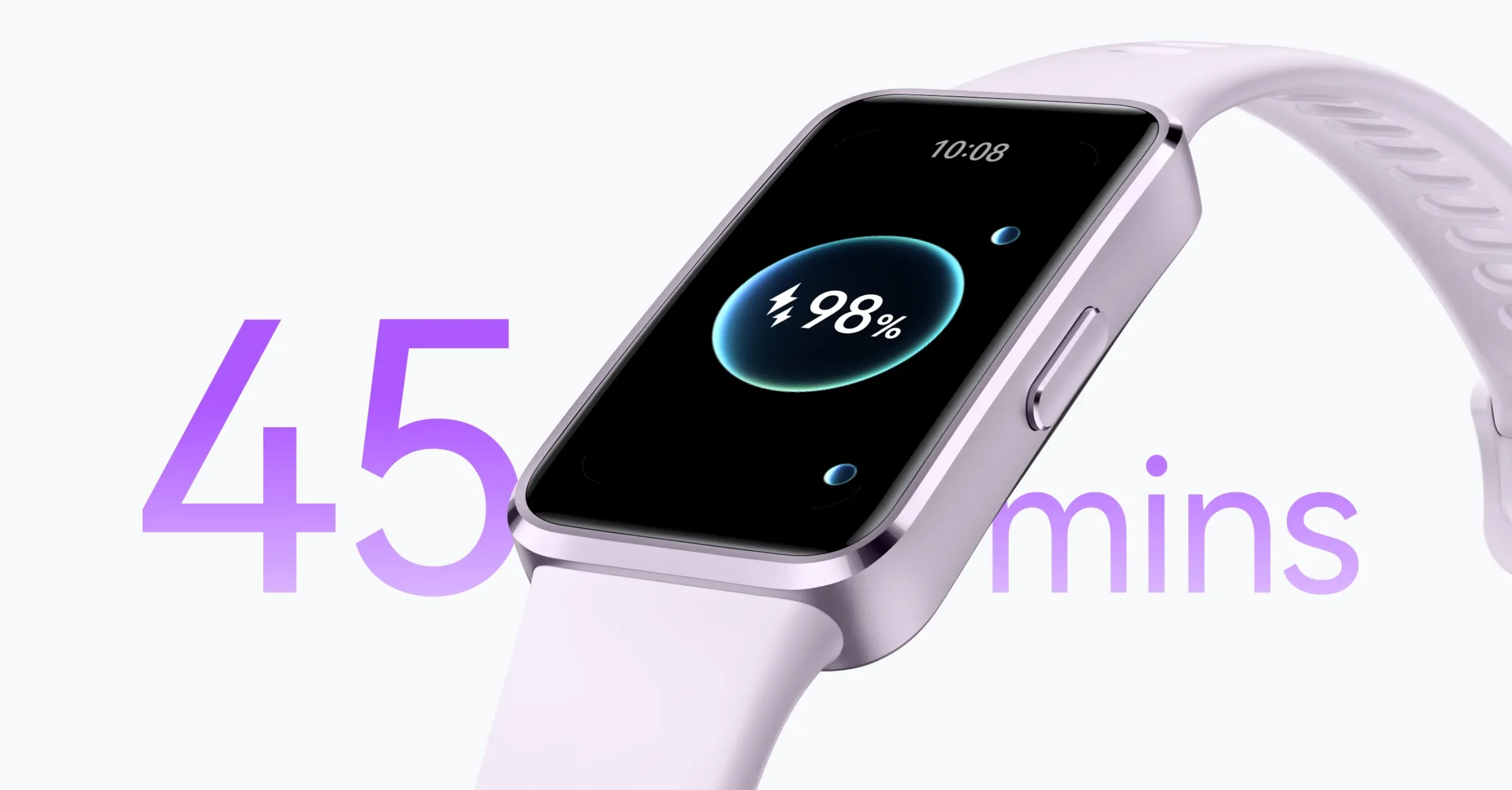 Apenas as edições Matte Black, White, Verde, Azul e Roxo da HUAWEI Band 10 vêm com uma caixa em liga de alumínio polida com processos CNC.